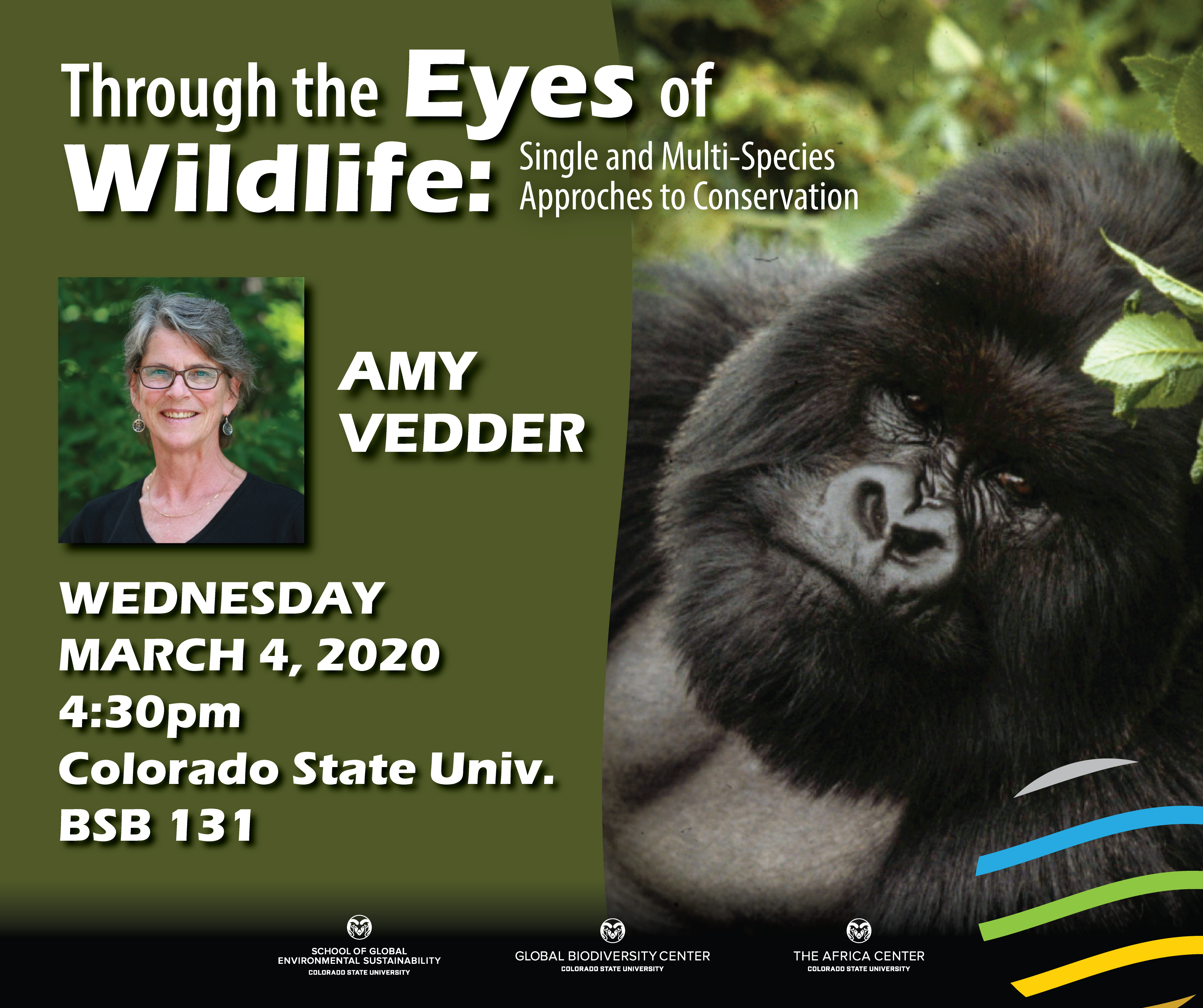 Join the Global Biodiversity Center and The Africa Center for a lecture by famed conservation biologist Dr. Amy Vedder at Colorado State University. Dr. Vedder will be giving two separate lectures with a different focus each evening and holding a …