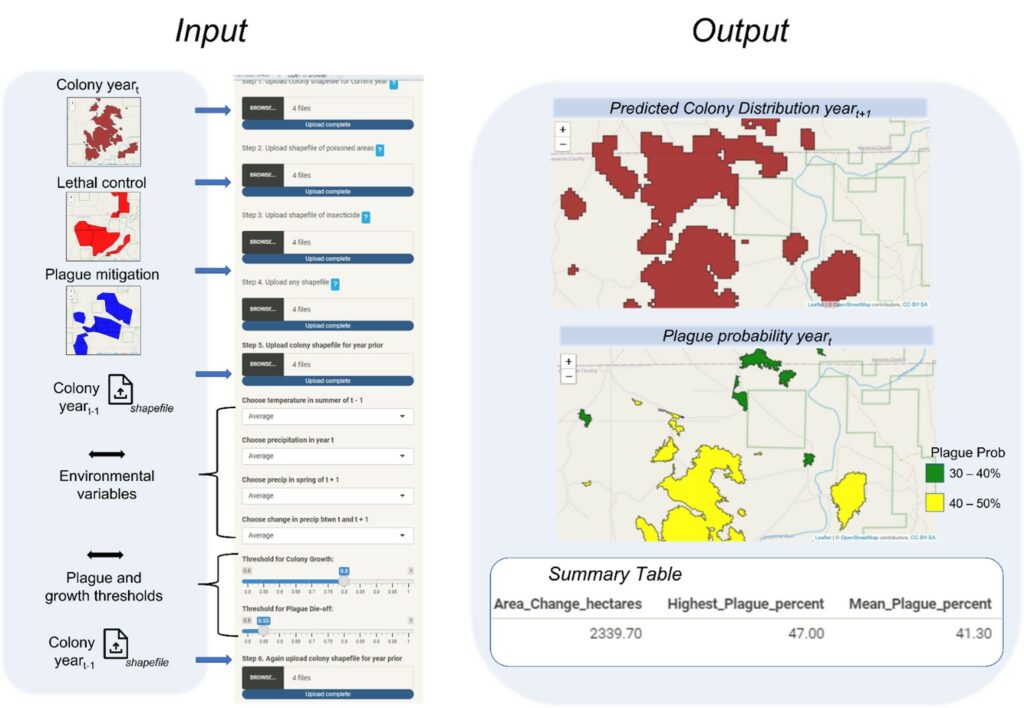 Great question. As is often the case in ecology, the short answer is: it depends. For one thing, management goals and site conditions vary greatly throughout America’s Central Grasslands. For another, funding for management is often limited and must be allocated to manage a variety of species. Managers do have options though, with the ability to either remove prairie dogs from unwanted areas through lethal or nonlethal means, or to protect prairie dogs within an area from plague through vaccines or insecticide to kill the fleas that carry plague, thus increasing the likelihood of large, stable populations. As both management strategies can be costly and labor intensive, it is imperative to apply these strategies only when necessary and in a manner that maximizes their effectiveness. Researchers at CSU, in collaboration with other institutions, recently developed PDOG MAPR, an application that land managers can use to predict changes in prairie dog populations and the likelihood of plague from year to year. Further, managers can input areas that they are considering managing and examine how those proposed actions will impact prairie dogs. This tool can be used to inform conservation of prairie dogs to maximize management actions and achieve desired objectives.