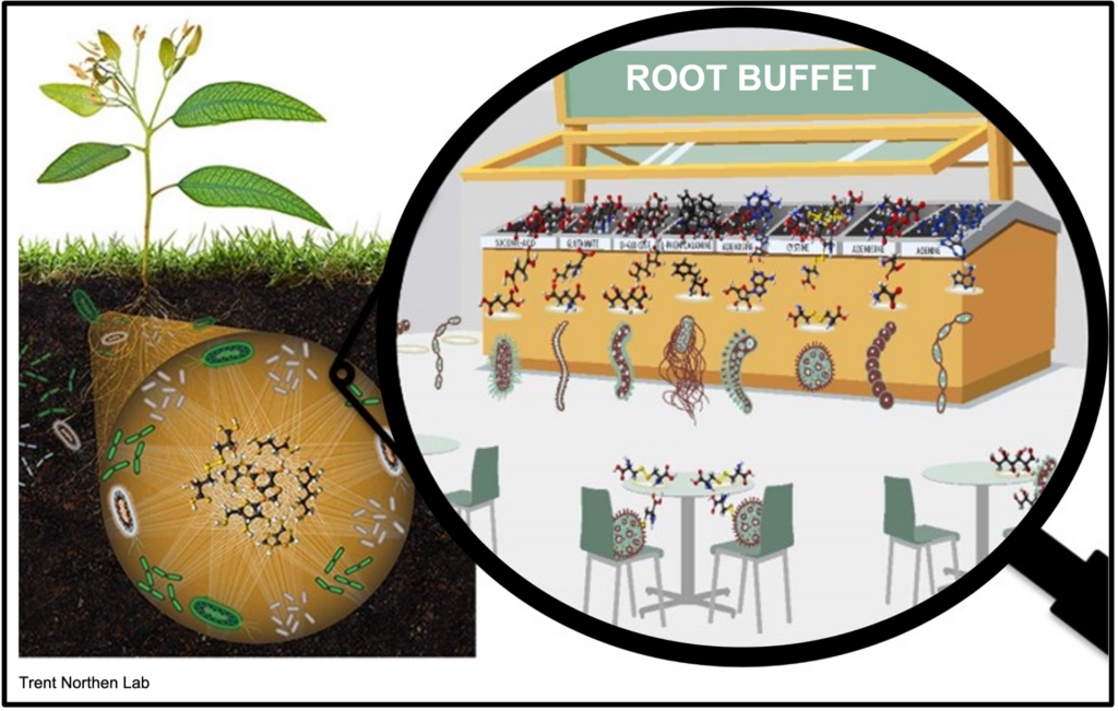 Current research has shown that each cover crop species has its own metabolic “signature” it releases into the soil (3, 5, 6), meaning each species of cover crop releases a different buffet of small molecules into the soil for microbial partners to dish up on! (8).