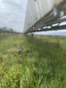 In grassland systems, vegetative productivity can actually be increased with the presence of solar panels, especially during droughts. Ecosystem-forward solar array management, like planting and supporting pollinator habitat, can also benefit wildlife. In the Midwestern U.S., ecovoltaic solar arrays supported more grassland bird species and bat activity than neighboring agricultural land. In ecology, it’s well established that variation in a landscape supports greater biodiversity. We see evidence that the variability created by the solar panels can do just that. Preliminary results from my research have shown changes in plant community composition in response to the unique climate zones created by the solar panels. Below ground, researchers are even seeing patterning in soil microbial communities in response to these altered climate conditions.