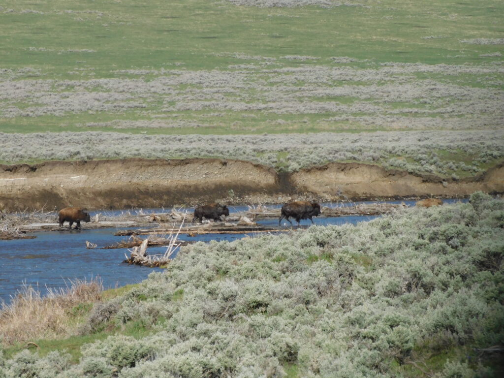 I am driving along the highway through Wyoming and can only send quick glances eastward. Out of the rust-colored fields, a furtive spot of white suddenly distinguishes itself from the grass, then another. Through repeated efforts, I can now identify a dozen pronghorn antelopes in the distance. For the third time, I am finishing the year by driving from Fort Collins to Bozeman to visit some dear friends, have some alpine adventures, play board games, and drink black currant cider before migrating back south to start a new calendar year. As I see the landscape unrolling before my eyes, I wonder what drives these antelopes on their own migration path. Just west of this road is the Greater Yellowstone Ecosystem – a mosaic of federal, state, tribal, and private lands that protect wildlife habitat and allows for large animal movement. It hosts a number of carnivores, including wolverines, lynx, and grizzly bears (as depicted in the banner picture). It is also an important movement corridor for ungulates (i.e., hoofed animals, which in Yellowstone include bighorn sheep, elk, and bison, as seen on the following picture). Finding many large mammals moving through this landscape is expected. Yet, I am still taken by the wonder of large scale, directional, animal movement. Where are they going, and how do they decide when and where to go?