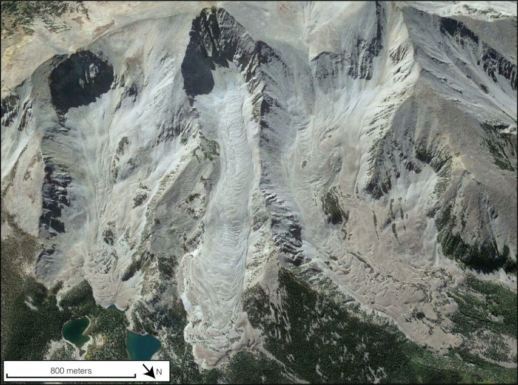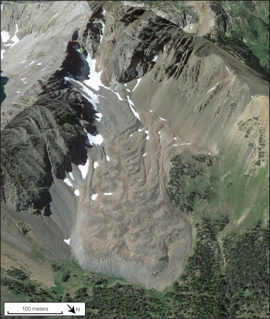 Colorado is home to over 3500 rock glaciers, often hiding in plain sight. When you think of a mountain glacier, you might imagine a large mass of white or blue ice, hanging in a cirque or flowing into a U-shaped valley. However, glaciers can be made of rock as well, or rather a combination of rock and ice. These “rock glaciers” can form when an ice glacier is buried with rock debris from surrounding slopes, or through a gradual process of many years of snowmelt freezing within a rocky slope until it starts to move downhill.