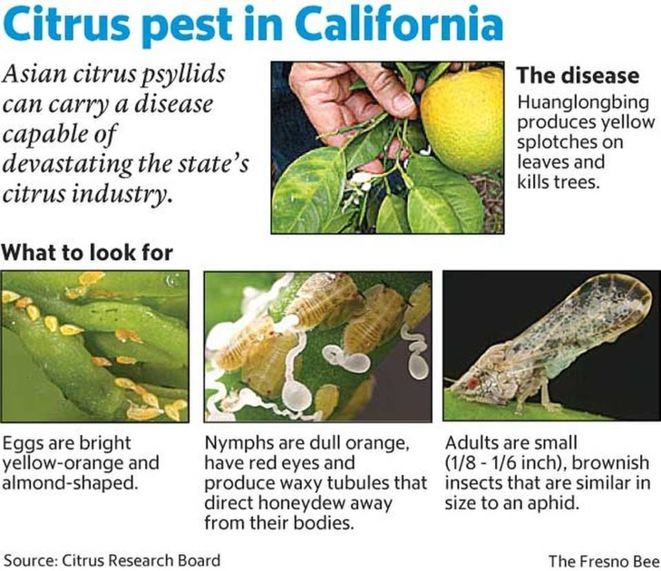 As I write this blog post, citrus farmers in the US are nervously awaiting the start of the 2018 growing season. The country’s citrus industry is once again under attack, this time by a bacterium that’s spread by an insect: the Asian citrus psyllid (Diaphorina citri). The bacterium causes citrus greening disease, also known as Huanglongbing or yellow dragon disease, which makes citrus trees produce green and bitter tasting fruits6. Once infected, trees die within a few years. The disease was discovered in 2004 in Brazil, and in 2005, it arrived in southern Florida. Citrus greening has affected over a million acres of citrus orchards in eight US states and in several African and Asian countries. The cure continues to evade scientists.