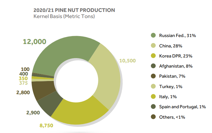 2) International Nuts and Dried Fruits Congress. Statistical Yearbook 2020/2021. https://www.nutfruit.org/industry/technical-resources?category=statistical-yearbooks