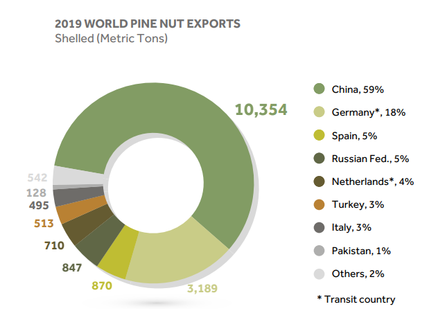 So how sustainable are pine nuts compared to cultivated nuts? First off, pine nuts make up 1% of the world tree nut production by weight in 2020/2021, or 38,175 metric tons2. Therefore, the current environmental impact pine nut harvesting is much more localized relative to the extensive system of cultivated nut orchards across the glove. Because pine nuts are mostly wild gathered, they do not require intensive irrigation like cultivated almonds or pistachios. Nevertheless, most of the sustainability issues surrounding pine nuts come from carbon costs of shipping of pine nuts across the globe. Locally sourced, unshelled pine nuts may present a sustainable alternative to purchasing imported pine nuts.